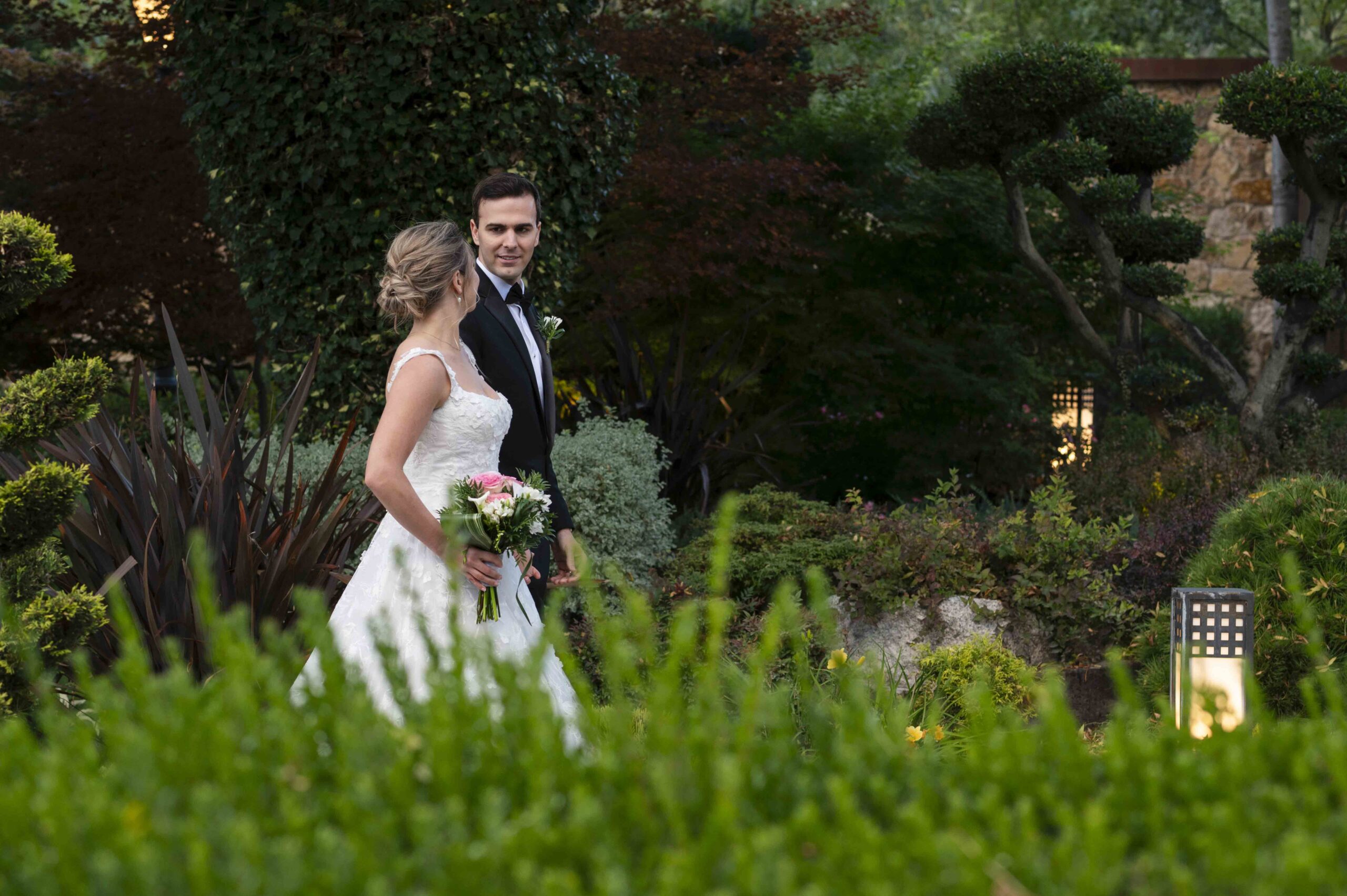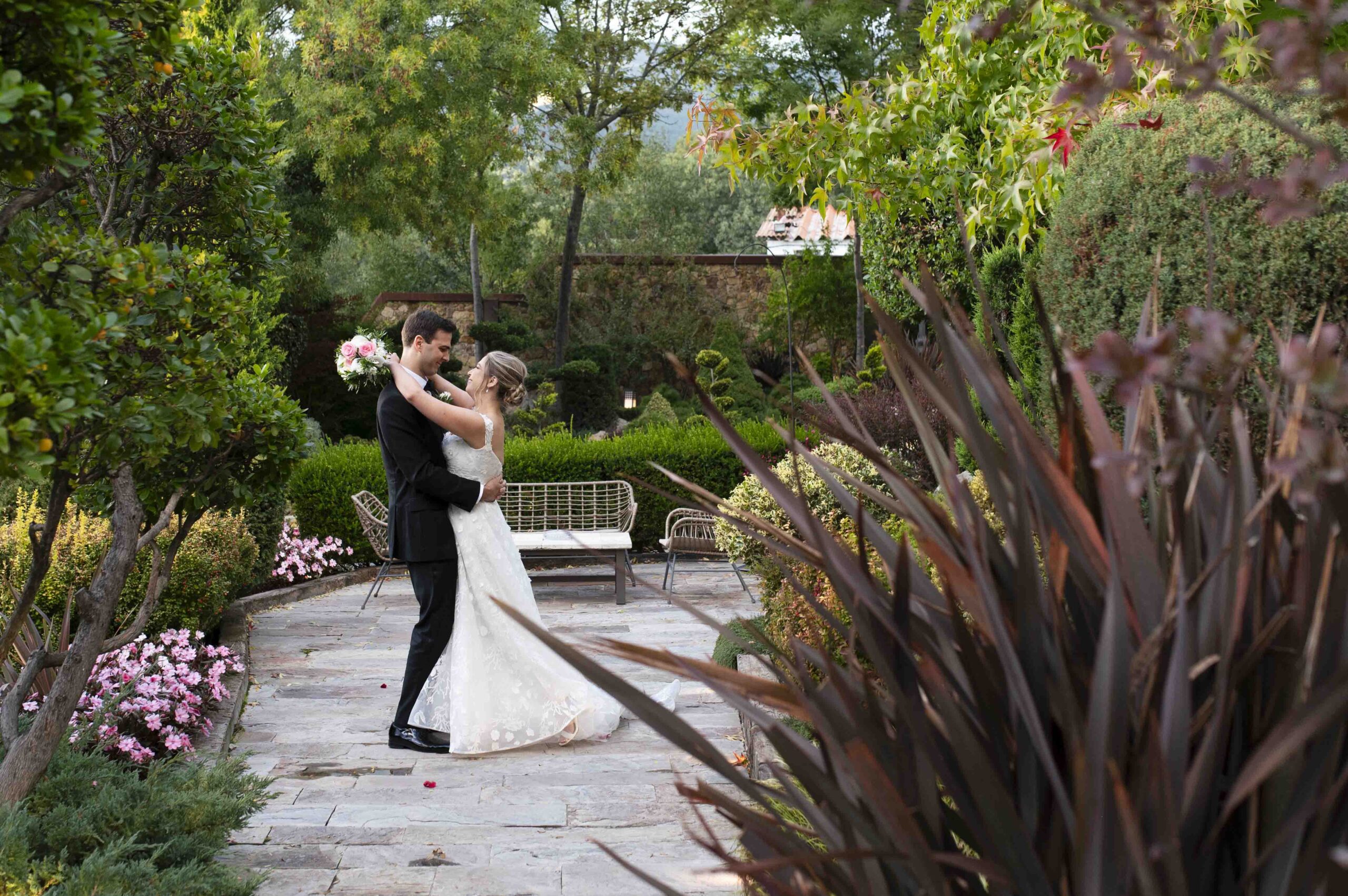 Kate trajo su vestido desde Boston, celebraron su ceremonia civil y posterior fiesta en Hacienda Jacaranda, en Miraflores de la Sierra, los invitados a la boda, venidos de todas las partes del mundo, disfrutaron muchísimo de la boda.